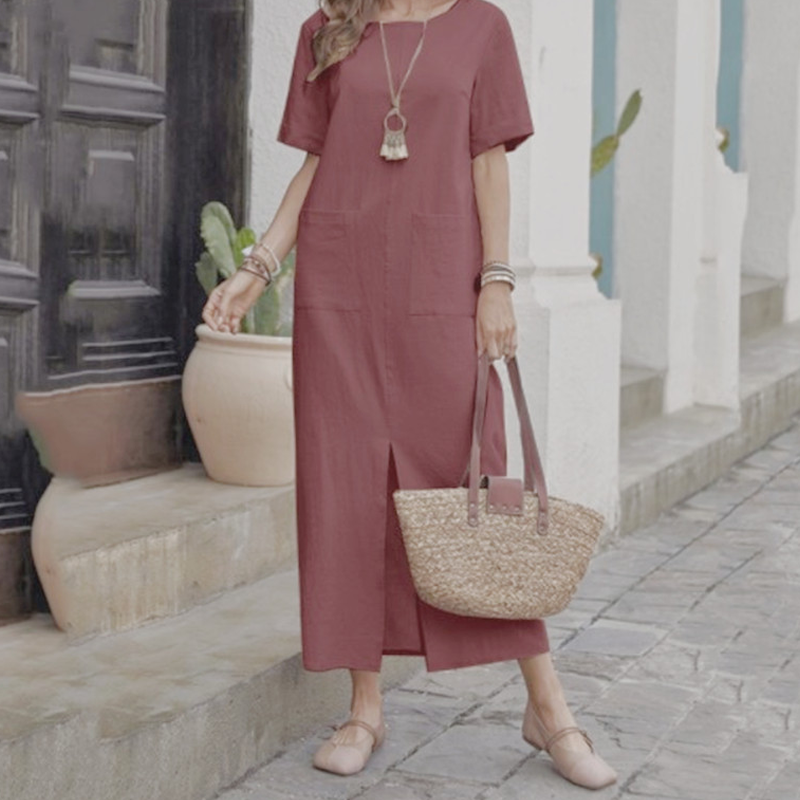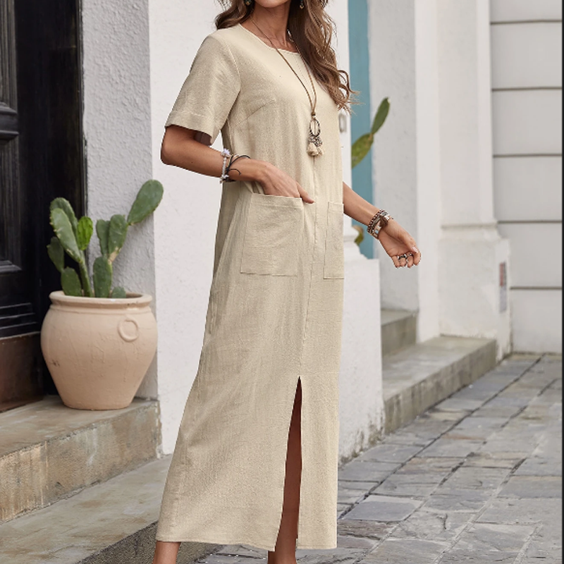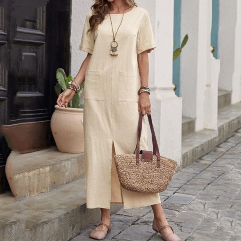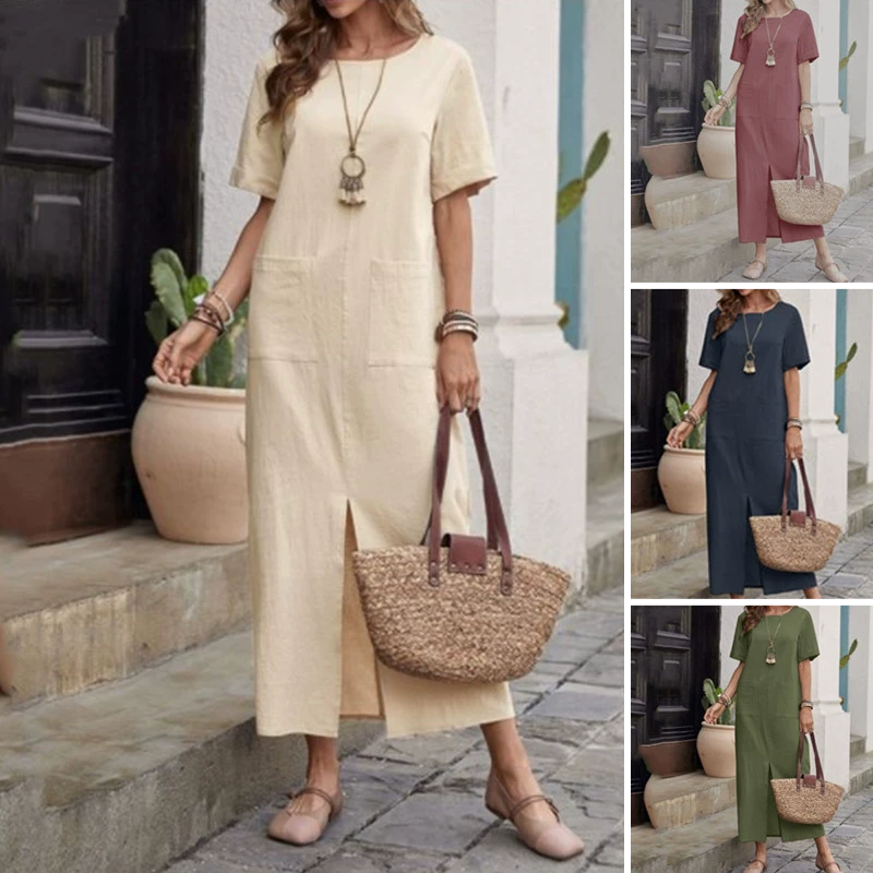 đżâšLösa klĂ€nningar med rund hals i bomull-linneđ„Köp 2 och fĂ„ fri frakt