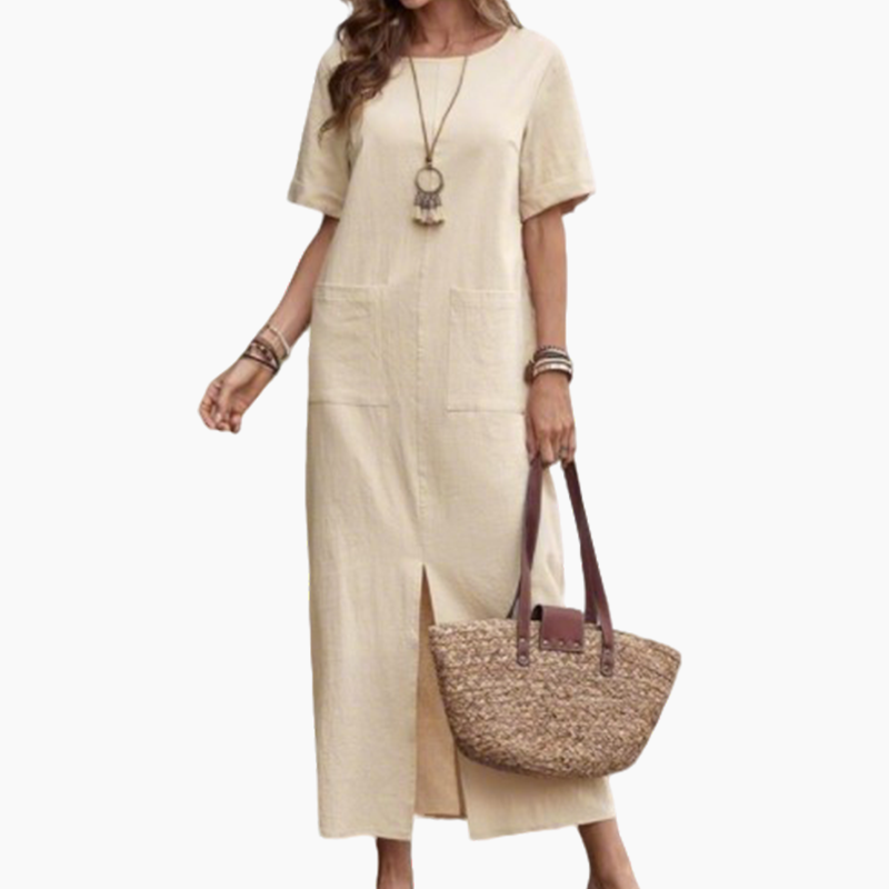 Paketet innehĂ„ller: 1ĂLös klĂ€nning med rund hals i bomull och linne