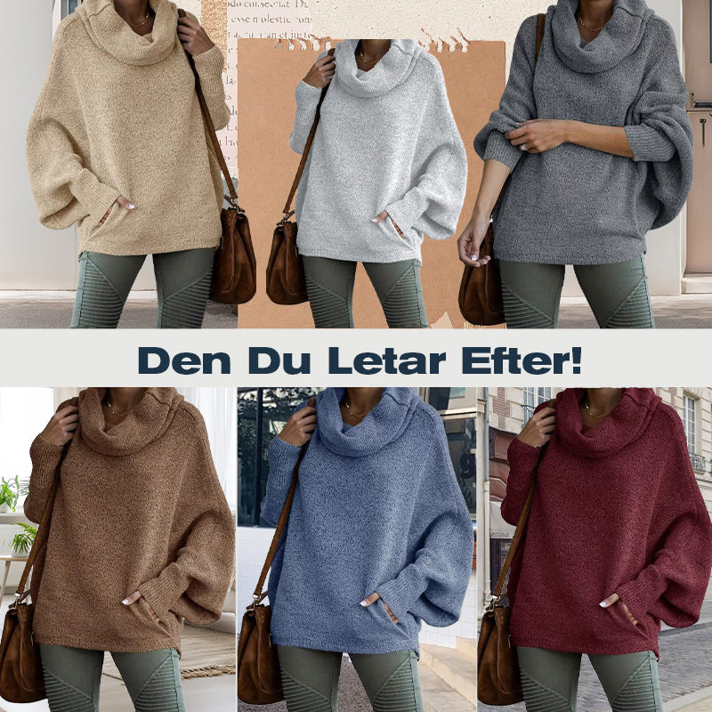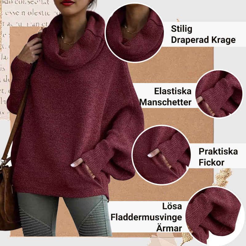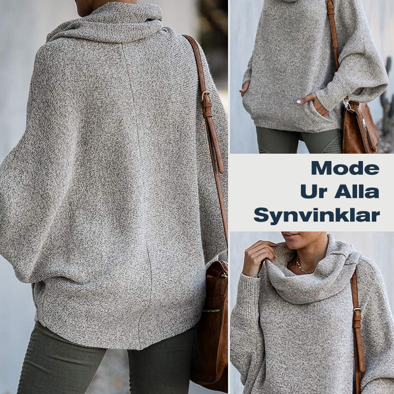 Fladdermusvinge Draperad Krage Tröja med Fickor för Kvinnor