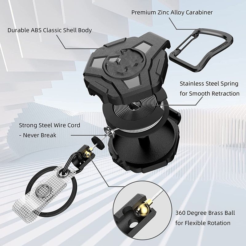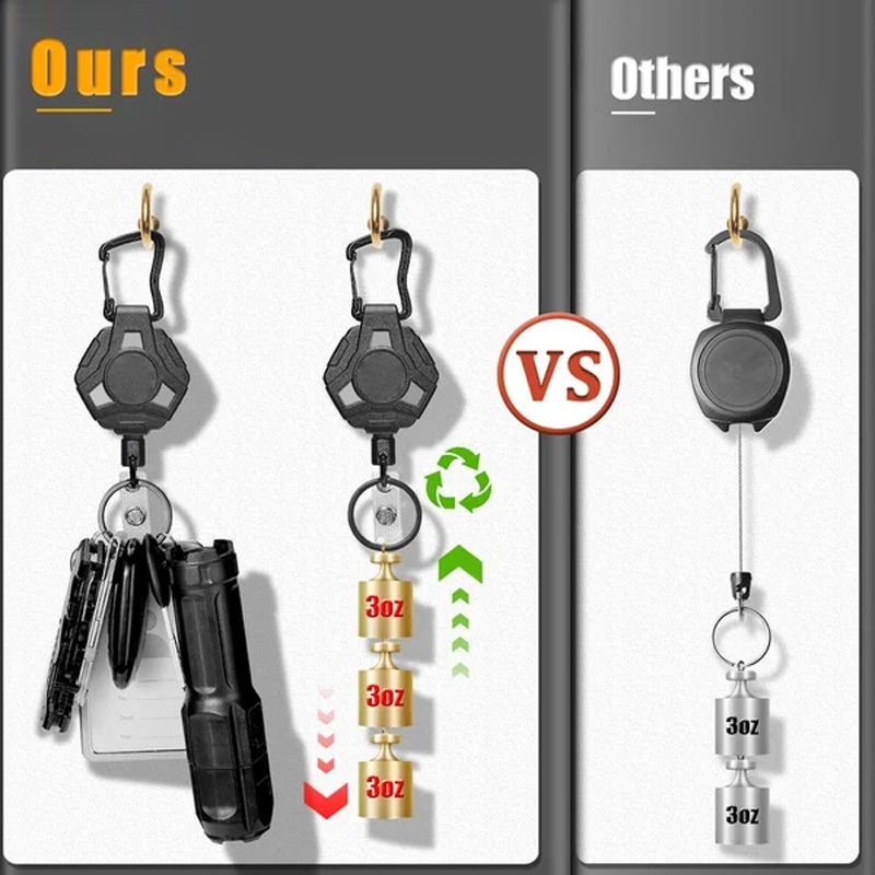 ROBUST: Har du letat efter en stark, hÄllbar och infÀllbar nyckelhÄllare? VÄr nyckelhÄllare Àr utrustad med en högkvalitativ stÄlvajer och fjÀder. Du kan enkelt fÀsta cirka 20 vanliga nycklar eller en vikt pÄ 170-225 gram. Oroa dig inte för att vajern gÄr sönder snabbt eller att vikten gör att den hÀnger ner.