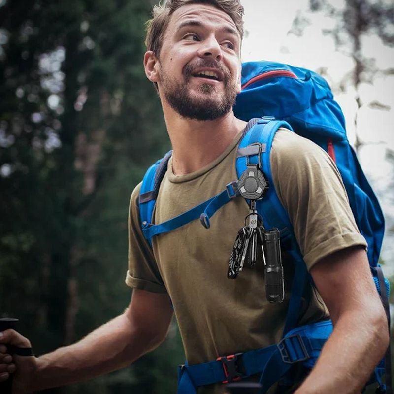 Mà NGSIDIG: Den infÀllbara nyckelringen med en karbinhake i zinklegering kan enkelt fÀstas pÄ bÀlte, handvÀskor, ryggsÀckar eller utomhustÀlt. Denna nyckelhÄllare levereras med en nyckelring och en kortbÀrare. Förutom att hÀnga nycklar och korthÄllare kan den ocksÄ hÀnga tÀnger, plÄnböcker, fickknivar, ficklampor, skruvmejslar och andra föremÄl.