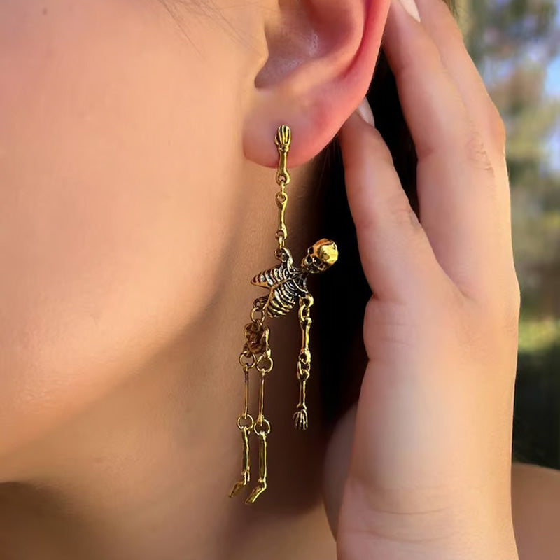 PUNK SKELETON DANGLE EARRINGS: Moderna och eleganta örhängen med dödskallar är inte för överdrivna, men de kan visa din unika smak och personliga charm, vilket gör att du lätt blir centrum för uppmärksamheten. Örhängen med dödskallar i punkstil passar inte bara att bära på Halloween, utan även till vardags, och är perfekta att bära vid olika tillfällen, såsom fester, dejter och på jobbet.