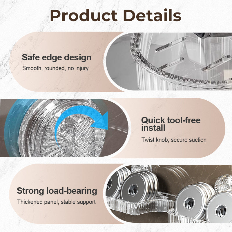 ENKEL INSTALLATION UTAN VERKTYG: Det är bara att vrida och dra åt knoppen för att fästa sugkoppen ordentligt. Vakuumvidhäftningsdesignen säkerställer stark stabilitet utan att skada väggar eller ytor. Flera finpolerade kanter gör hanteringen säker och undviker repor eller handskador.