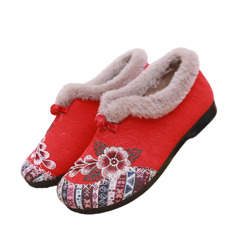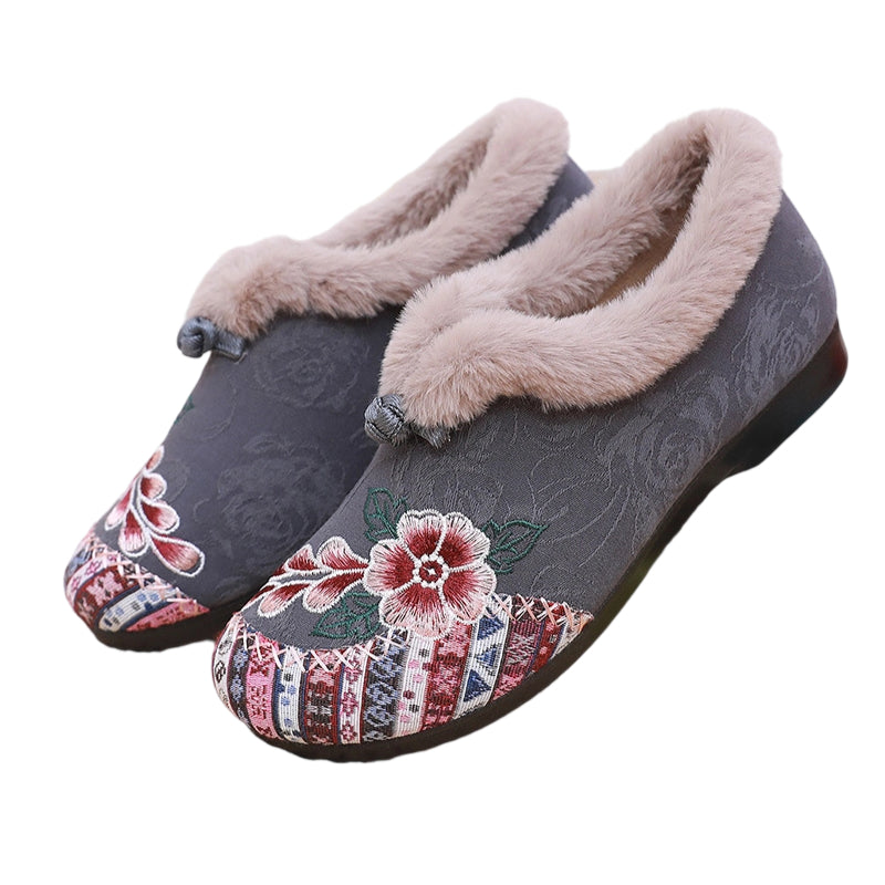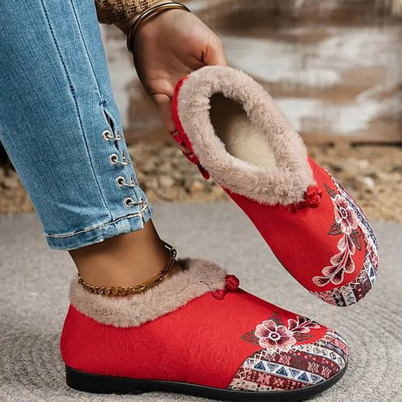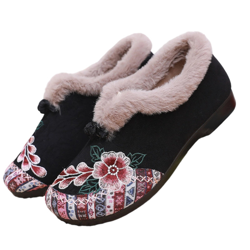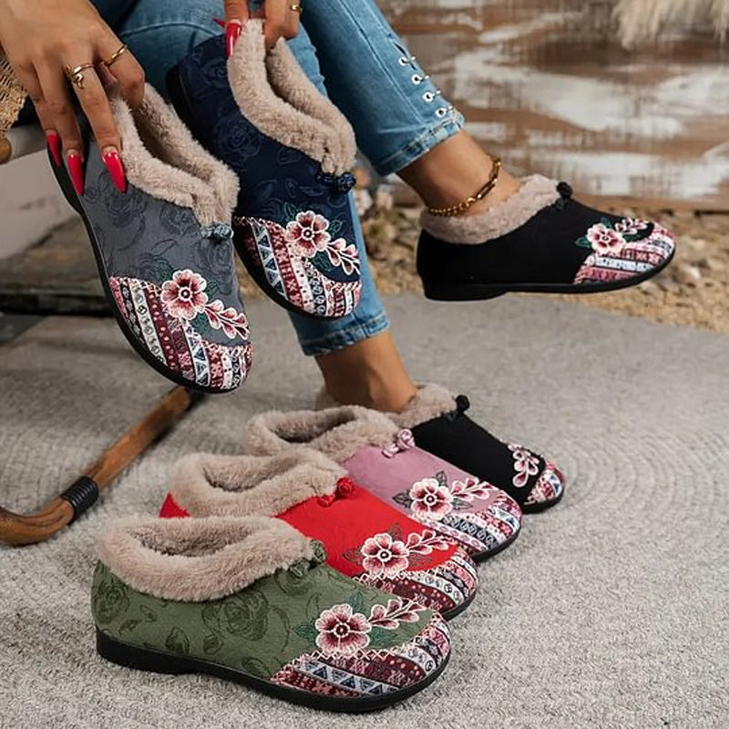 Traditionella Broderade Skor Med Varmt Foder För Kvinnor