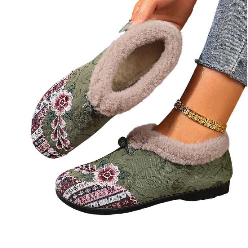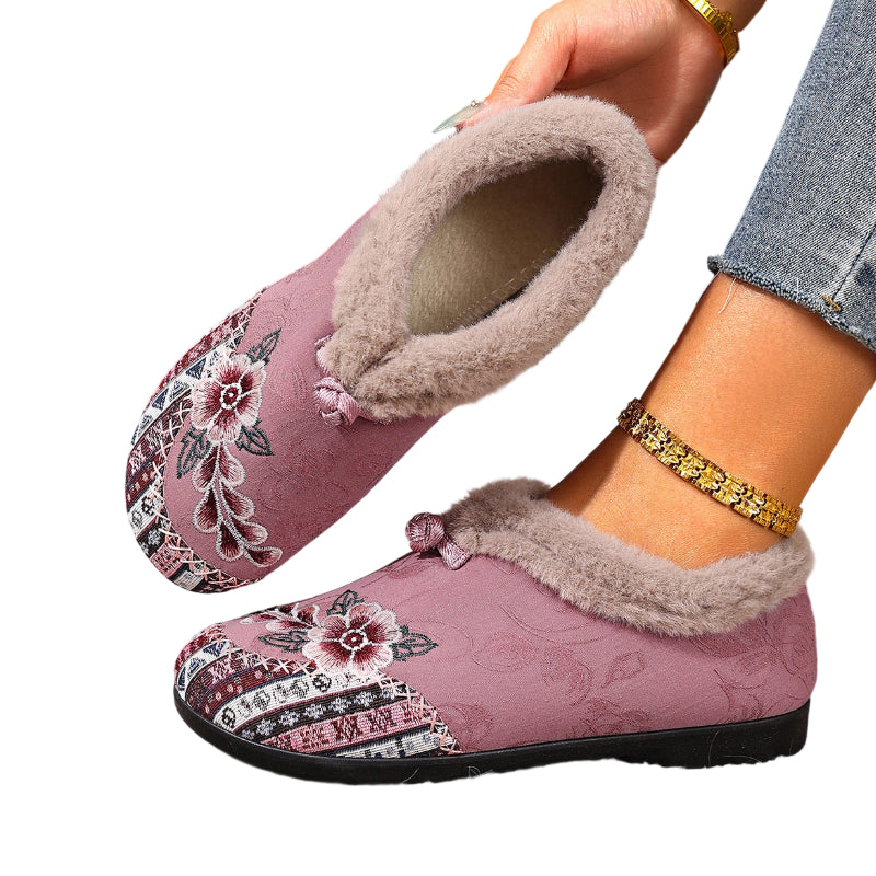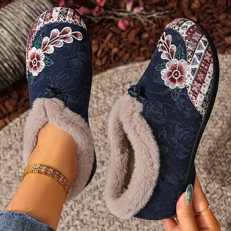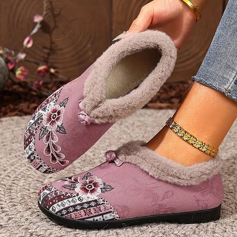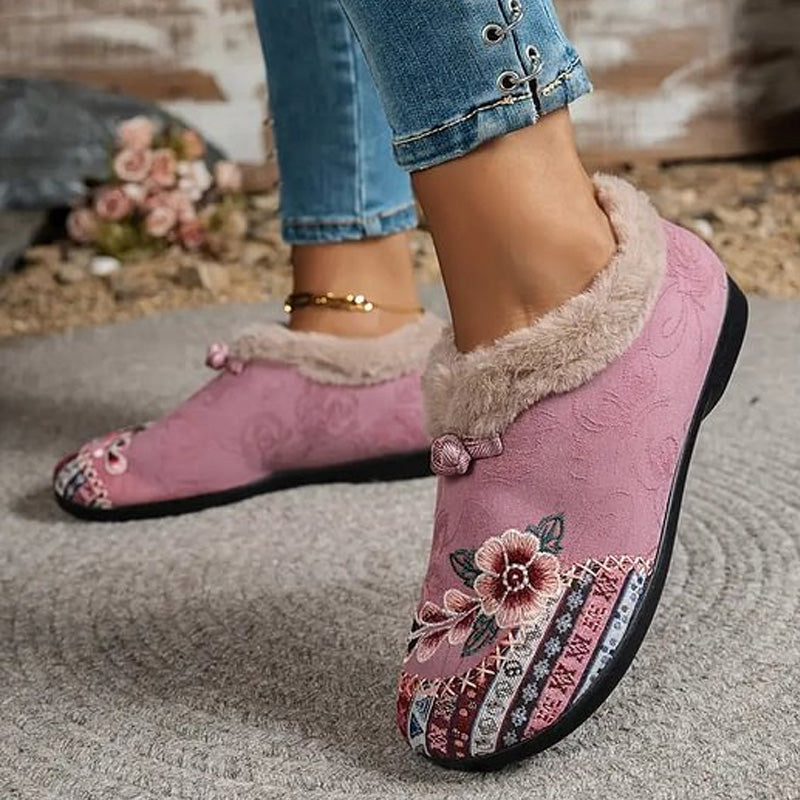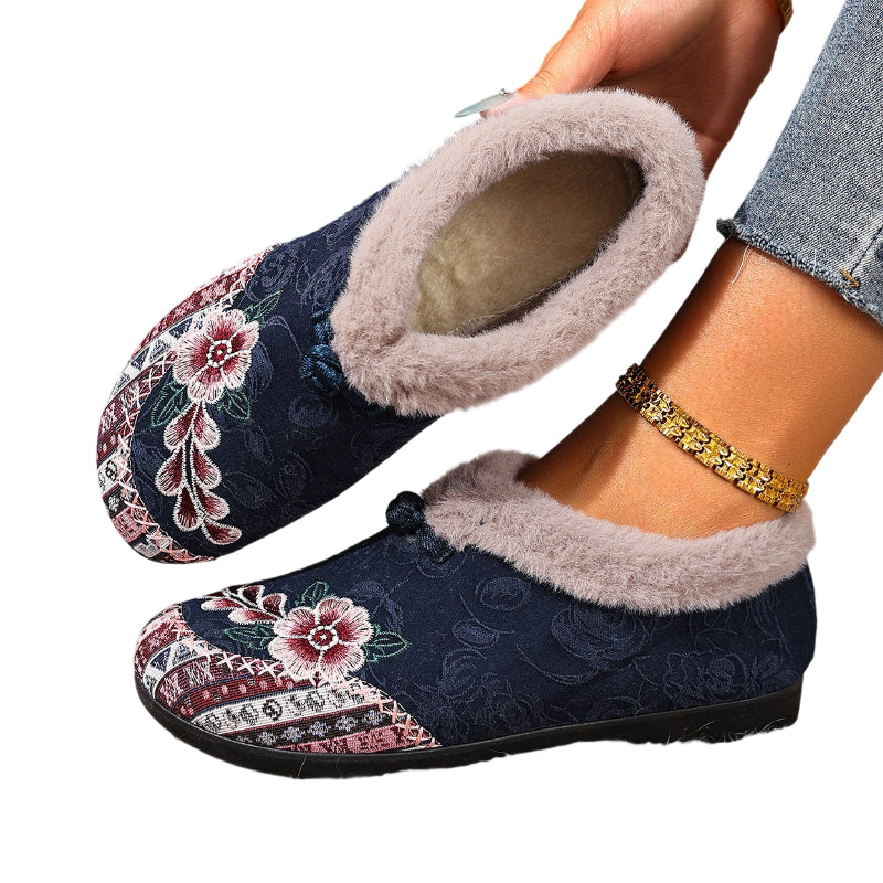 Traditionella Broderade Skor Med Varmt Foder För Kvinnor