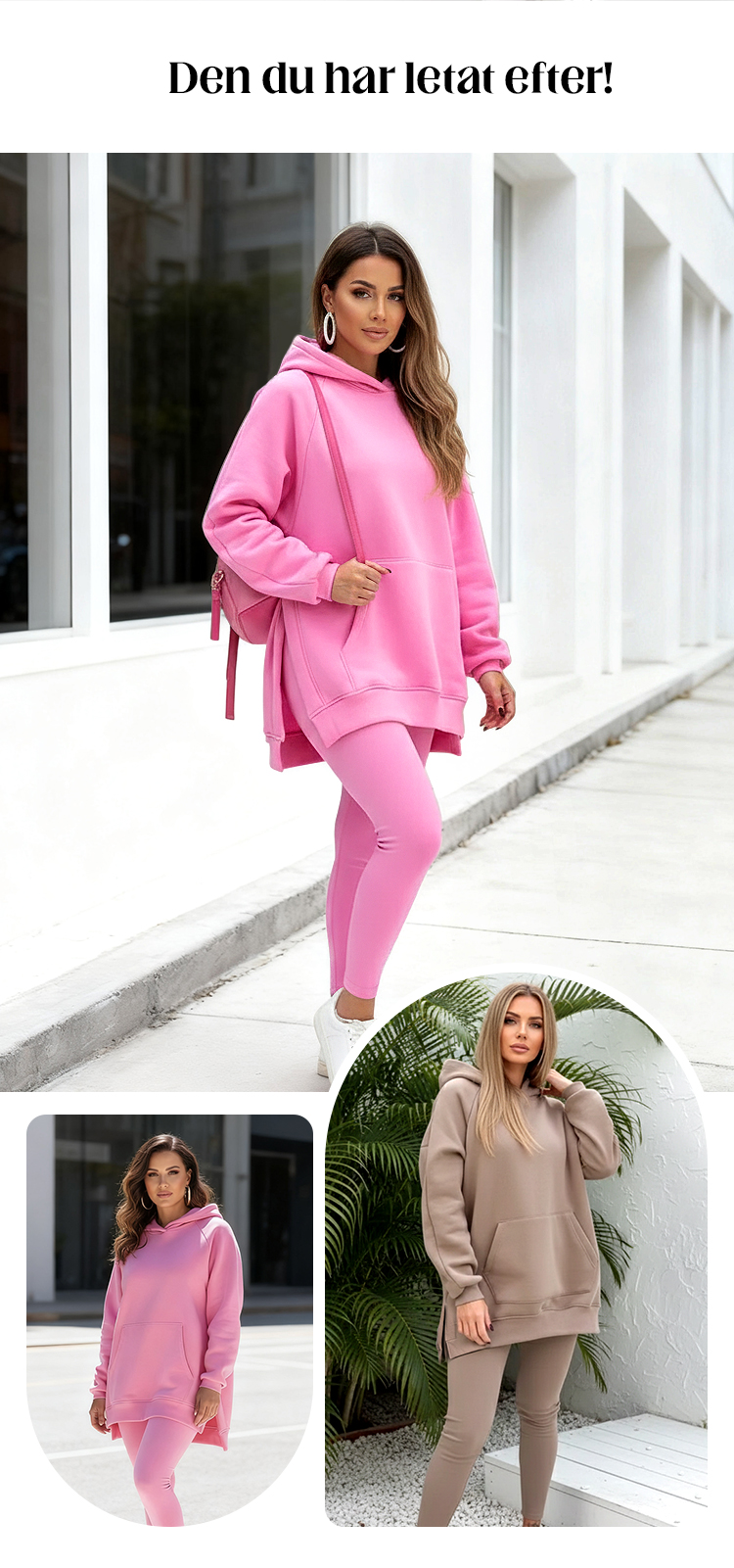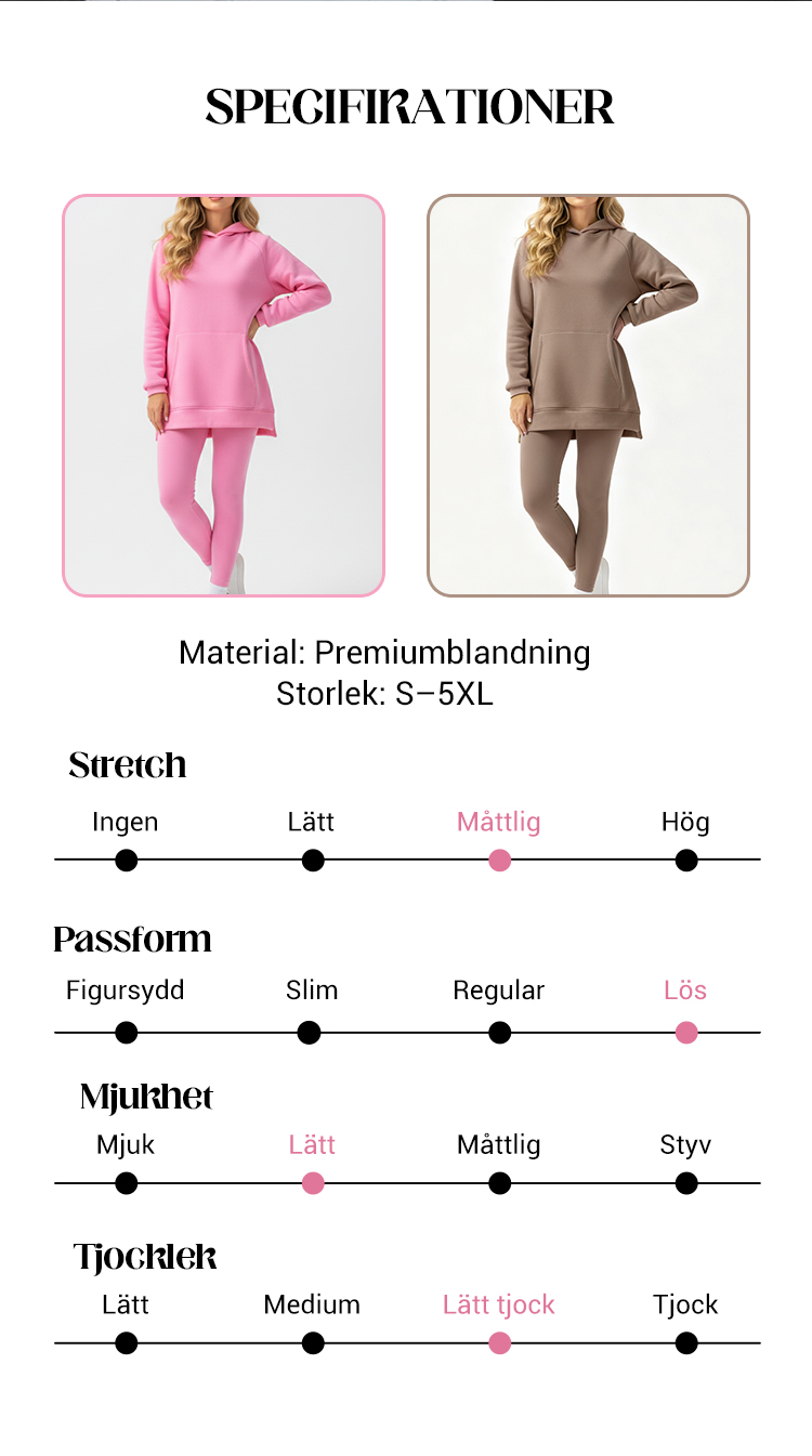 Stilfullt 2-delat set för kvinnor: luvtröja och byxor